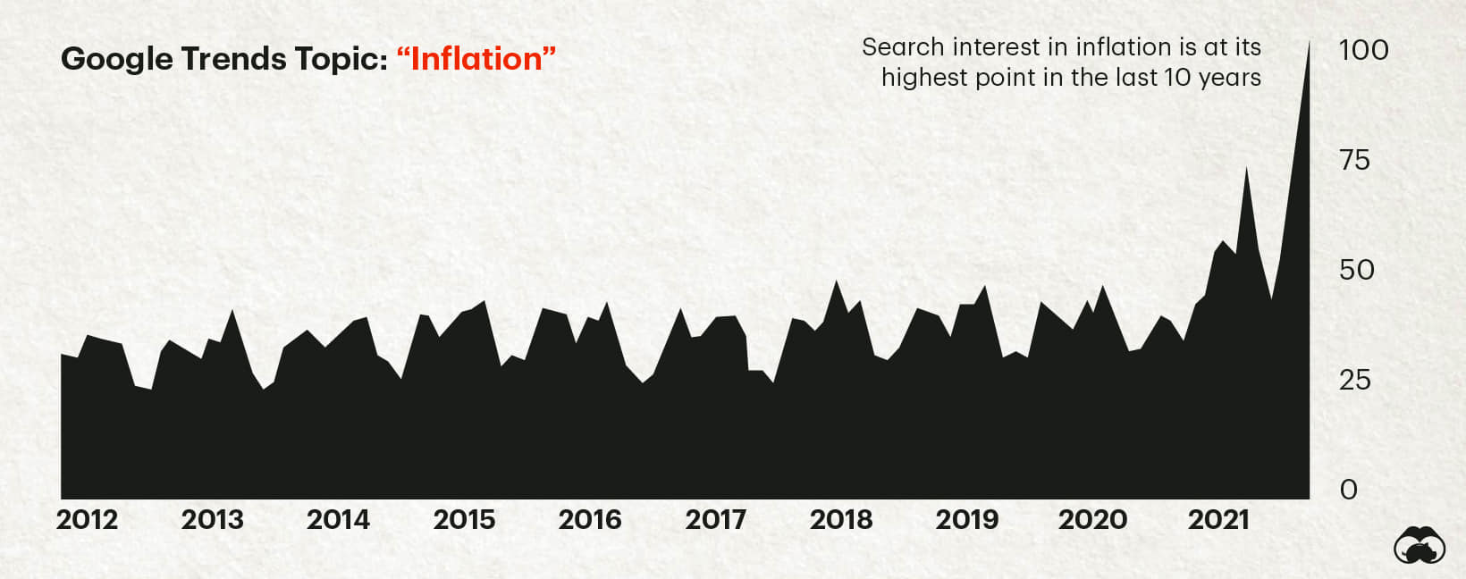 Since January 2021, Google trends showed a 73% increase in searches for the term inflation and 98% for the term hyperinflation, with peaks at the end of October 2021.
