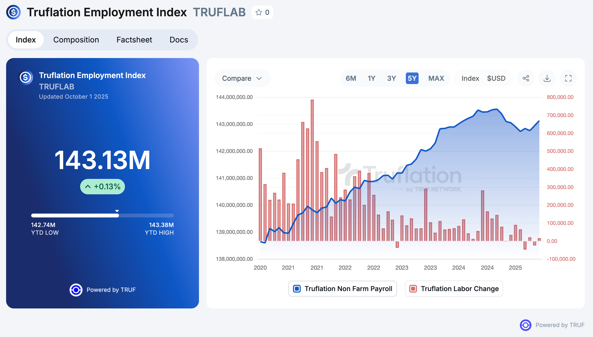 The Truflation Employment Index is powered by TRUF.NETWORK, the blockchain infrastructure layer supporting Truflation’s broader suite of real-time economic indicators, including inflation, housing, spending, and labor data.